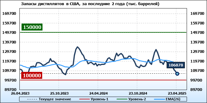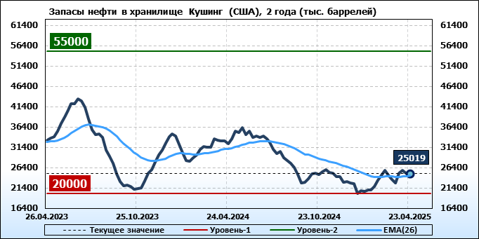 EIA. Коммерческие запасы нефти в США на 23 апреля 2025