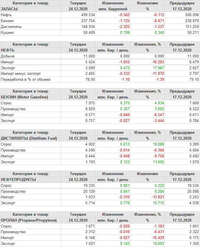 API. Изменение запасов нефти в США на 22 декабря 2020
