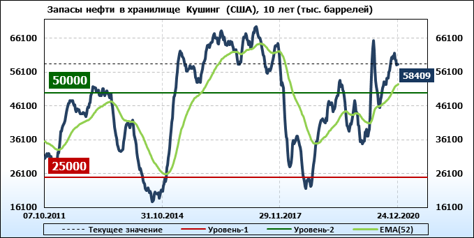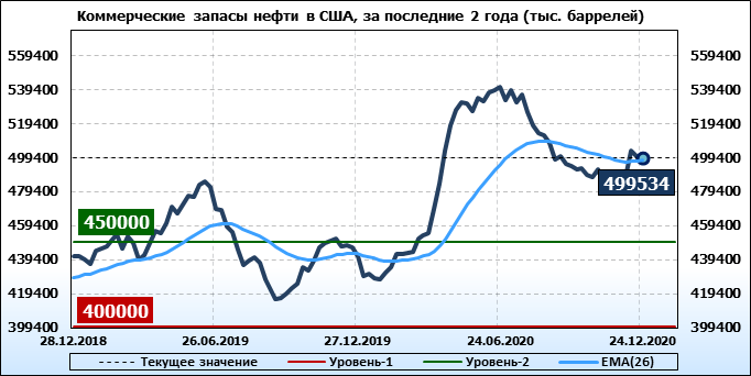 EIA. Коммерческие запасы нефти в США на 24 декабря 2020
