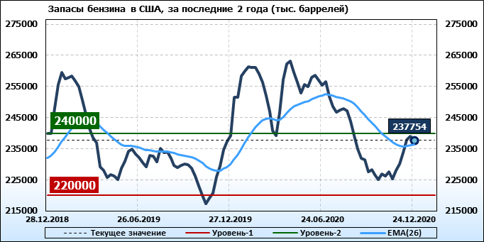 Эксперты, опрошенные агентством Bloomberg, ожидали уменьшения запасов нефти на 3000 тыс. баррелей, роста запасов бензина на 800 тыс. баррелей и снижения запасов дистиллятов на 1500 тыс. баррелей.