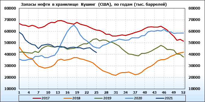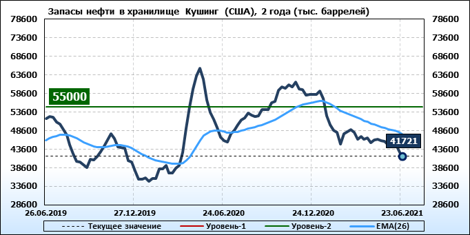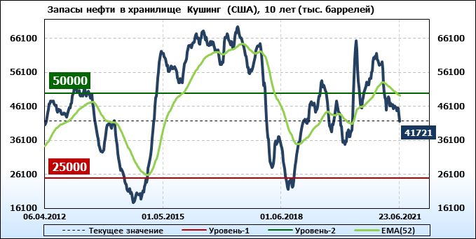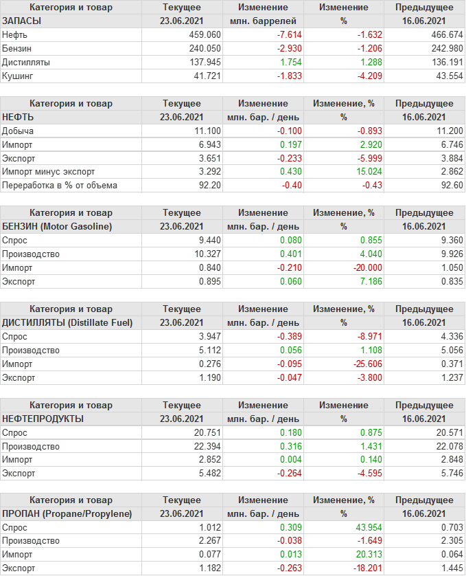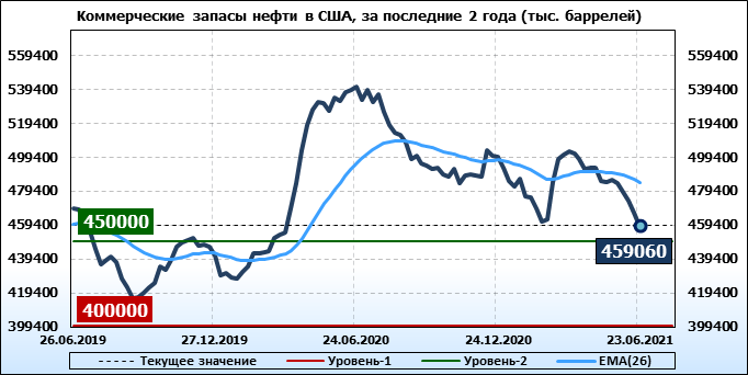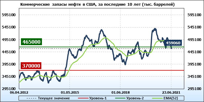 EIA. Коммерческие запасы нефти в США на 23 июня 2021