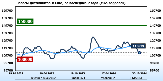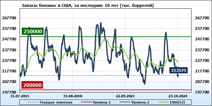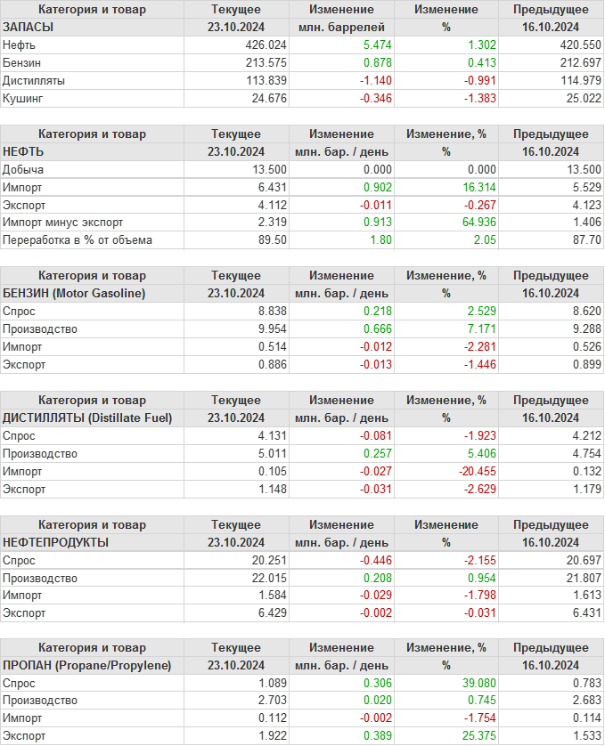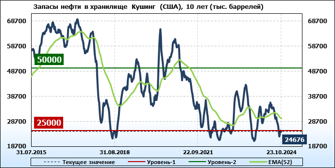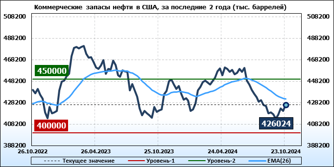 EIA. Коммерческие запасы нефти в США на 23 октября 2024