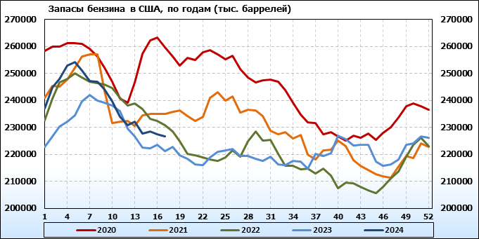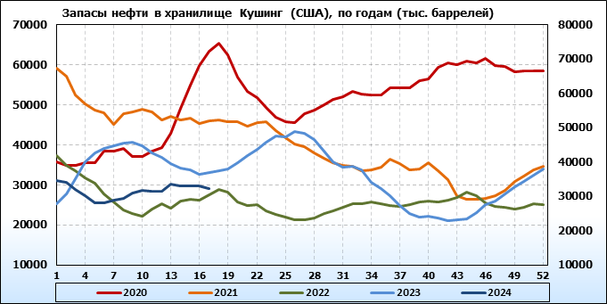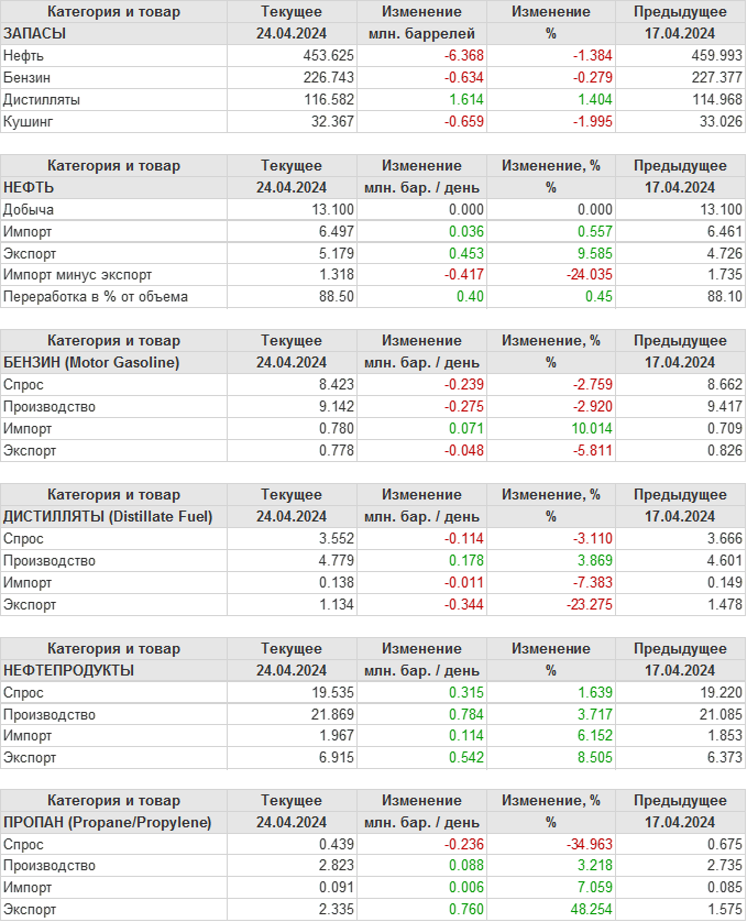 API. Изменение запасов нефти в США на 23 апреля 2024