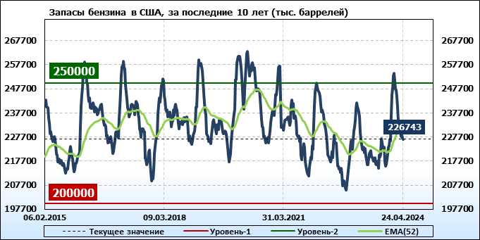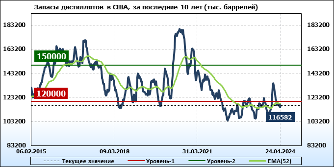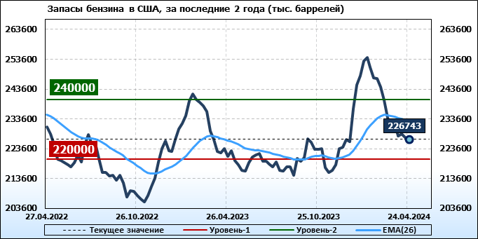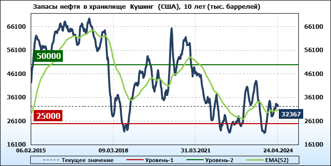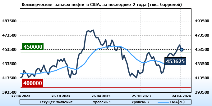 EIA. Коммерческие запасы нефти в США на 24 апреля 2024
