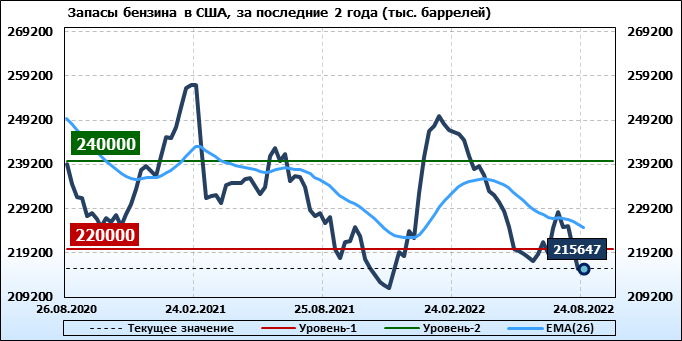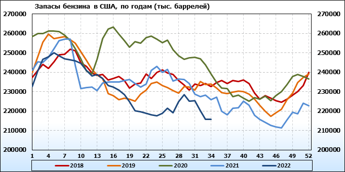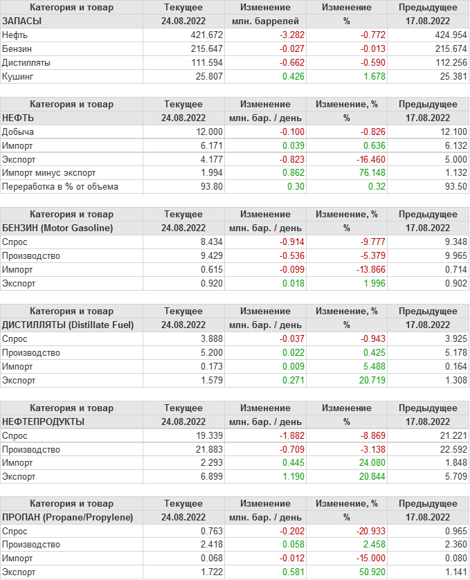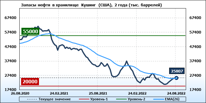 EIA. Коммерческие запасы нефти в США на 24 августа 2022
