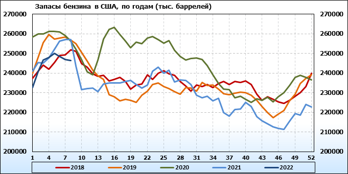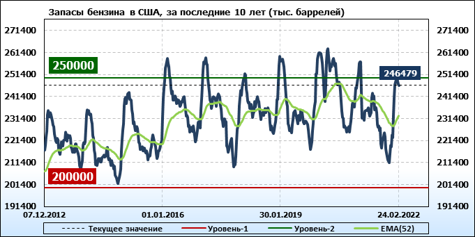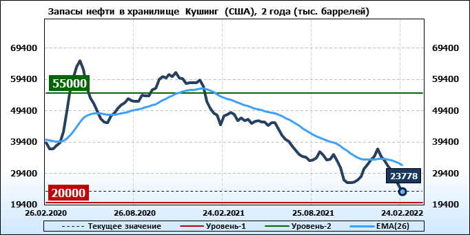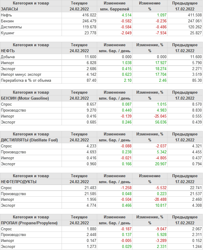 API. Изменение запасов нефти в США на 23 февраля 2022