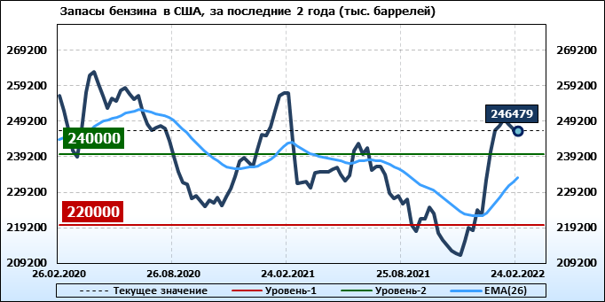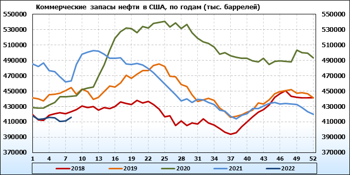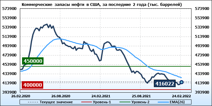 EIA. Коммерческие запасы нефти в США на 24 февраля 2022