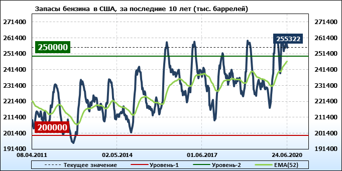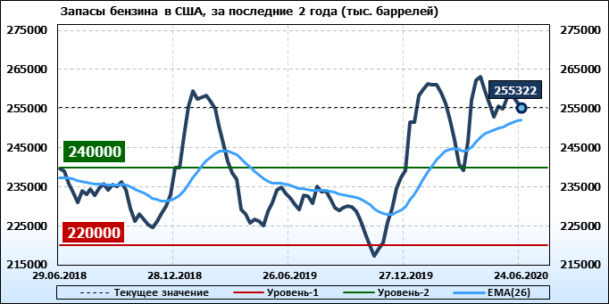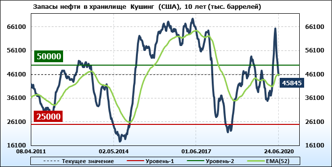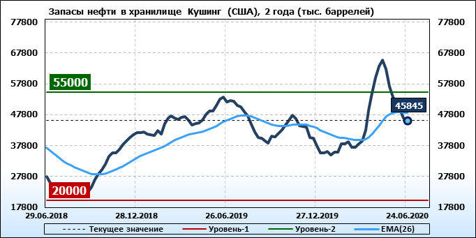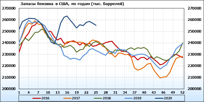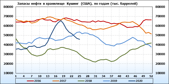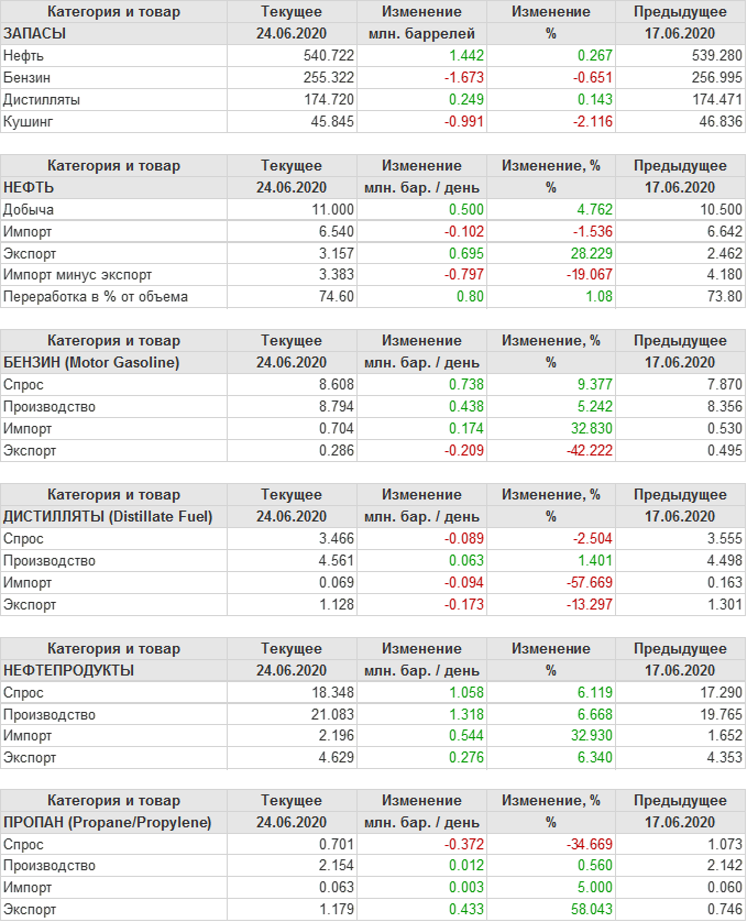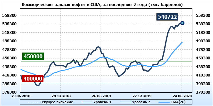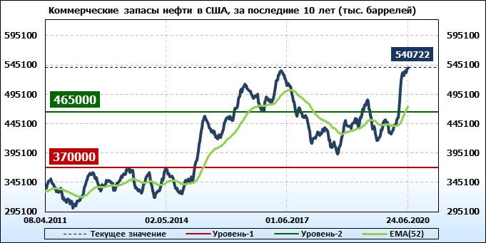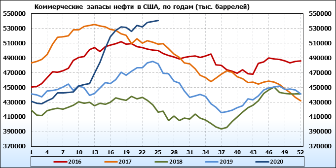 EIA. Коммерческие запасы нефти в США на 24 июня 2020