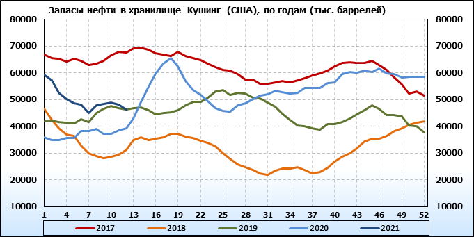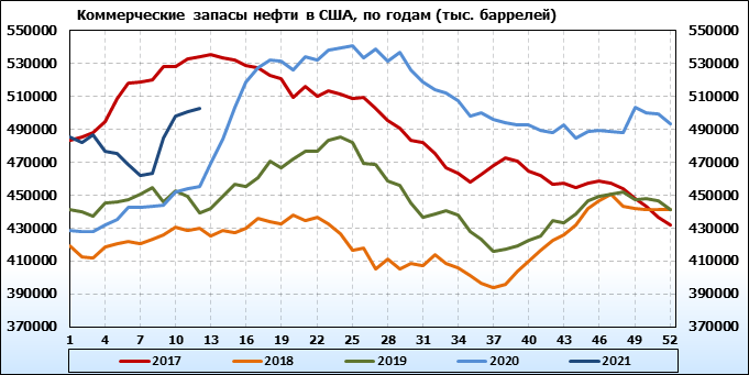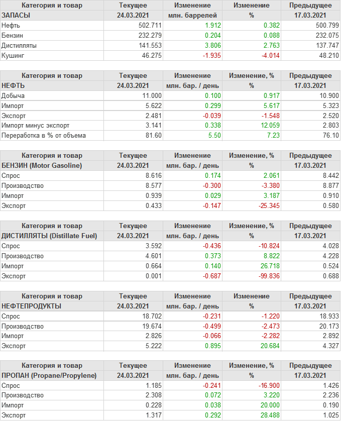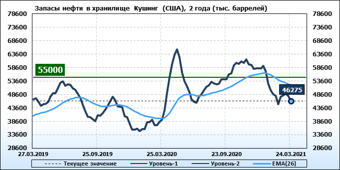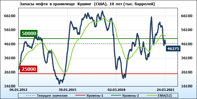 EIA. Коммерческие запасы нефти в США на 24 марта 2021
