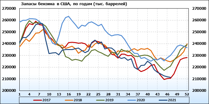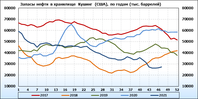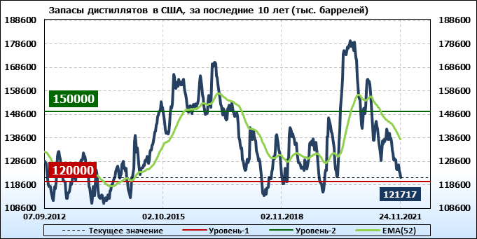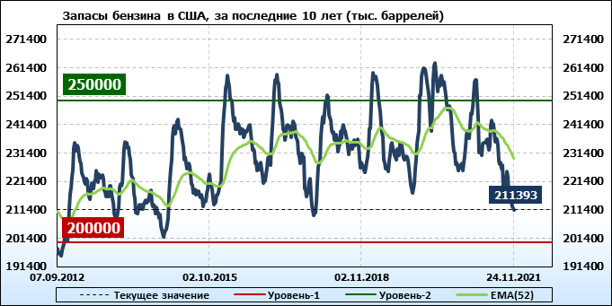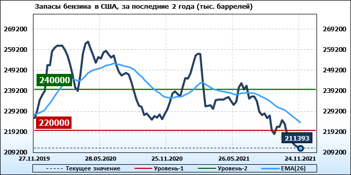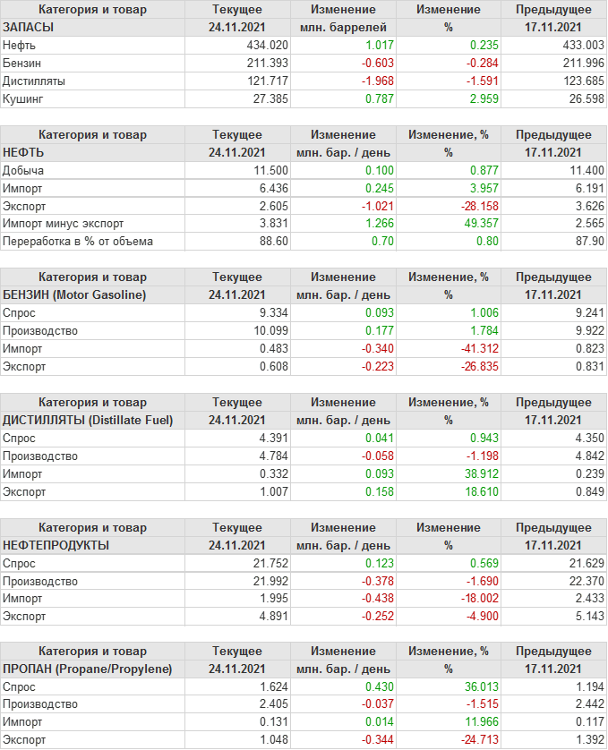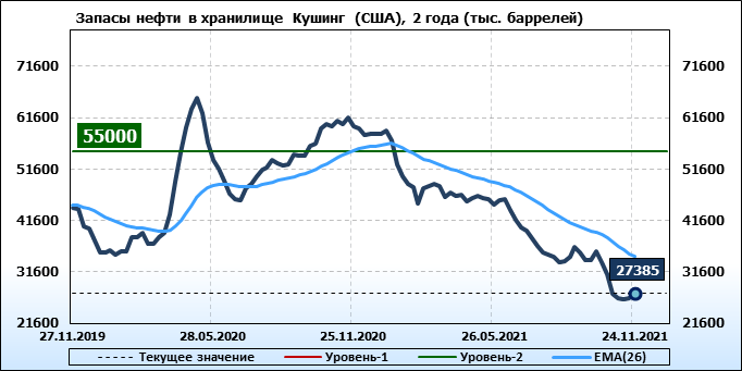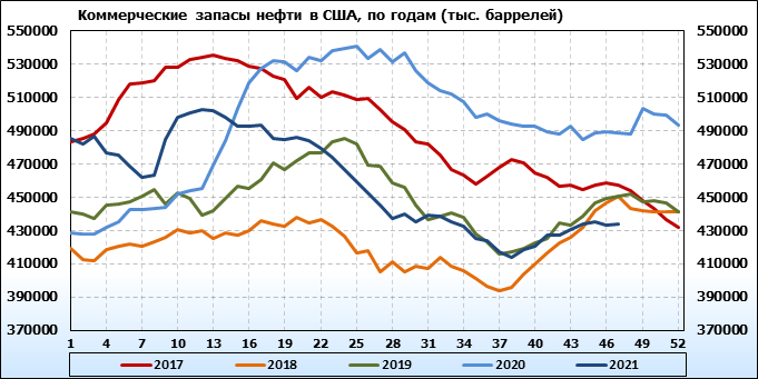 EIA. Коммерческие запасы нефти в США на 24 ноября 2021