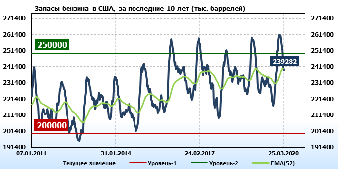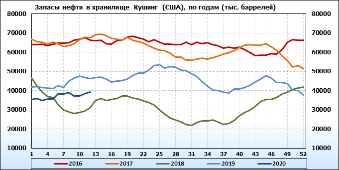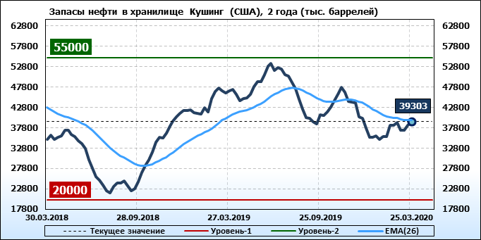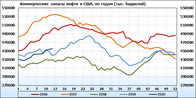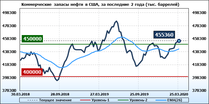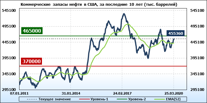 EIA. Коммерческие запасы нефти в США на 25 марта 2020