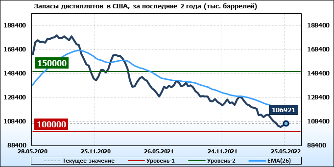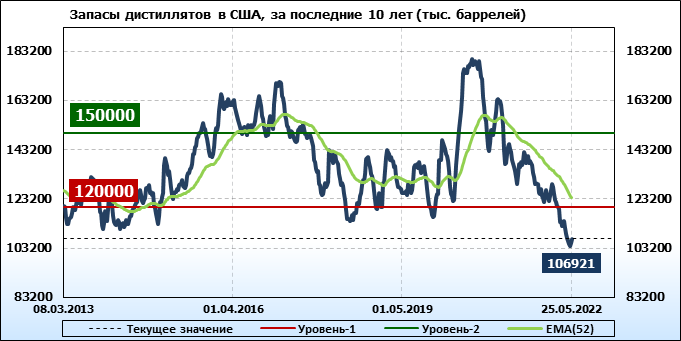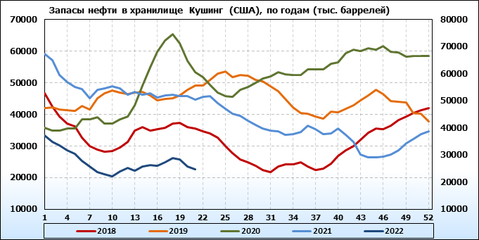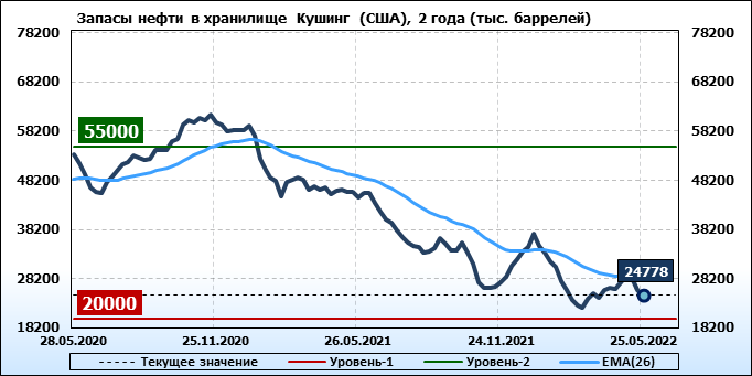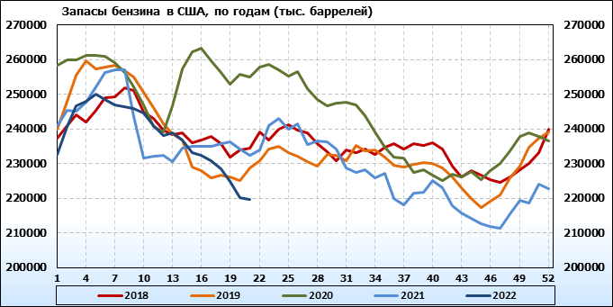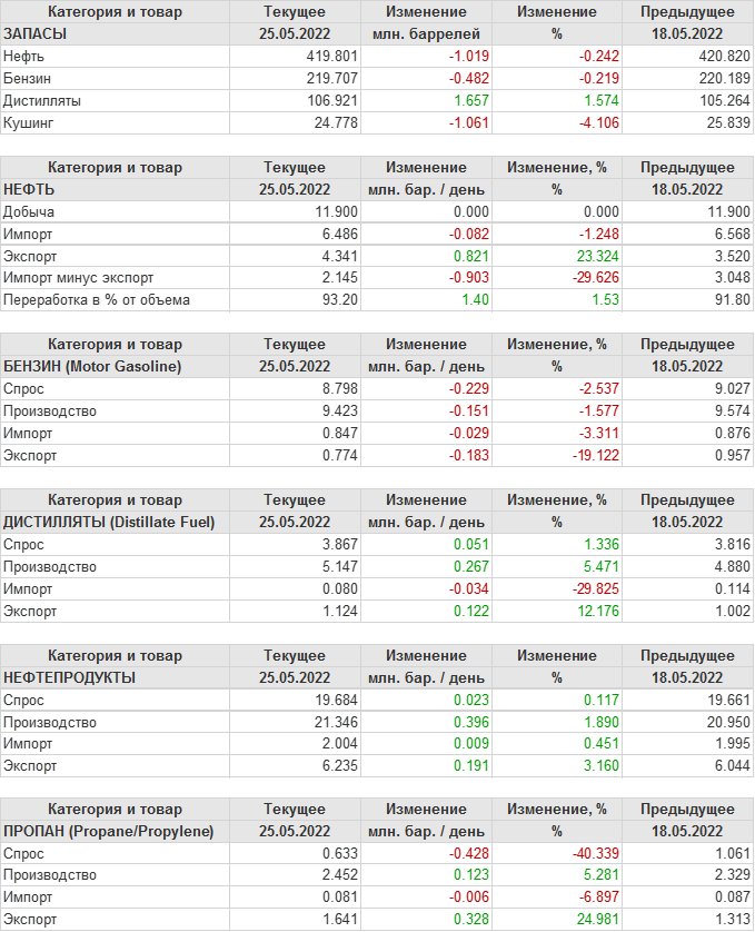 API. Изменение запасов нефти в США на 24 мая 2022