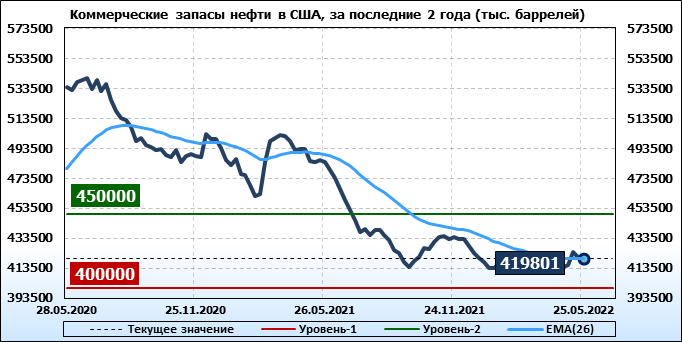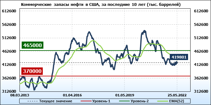 EIA. Коммерческие запасы нефти в США на 25 мая 2022