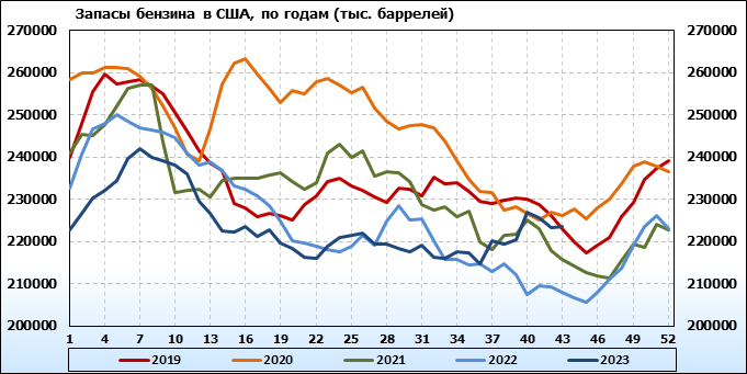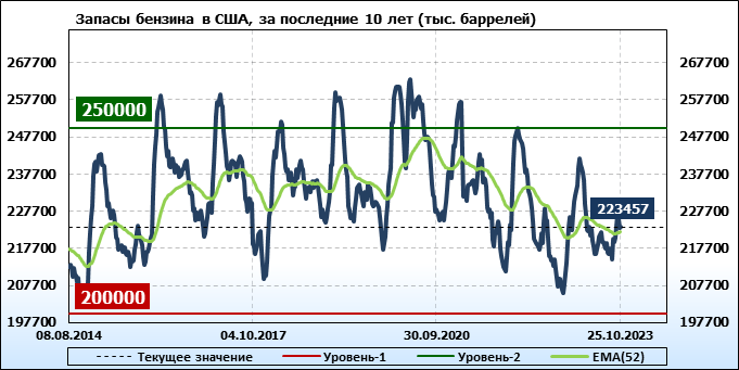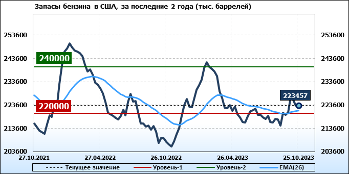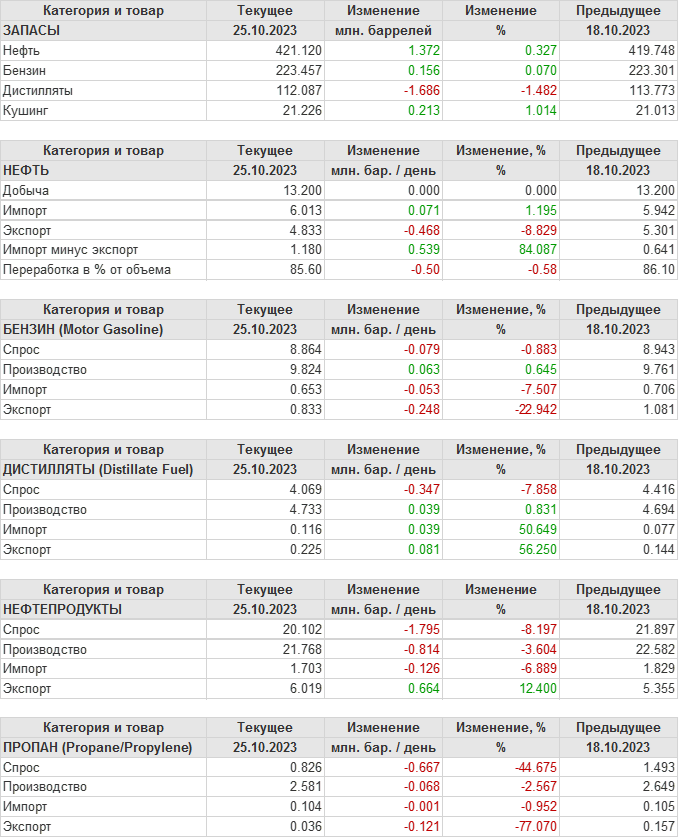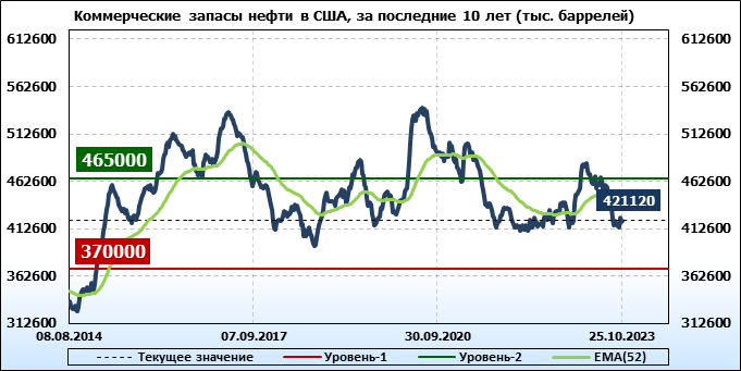 EIA. Коммерческие запасы нефти в США на 25 октября 2023