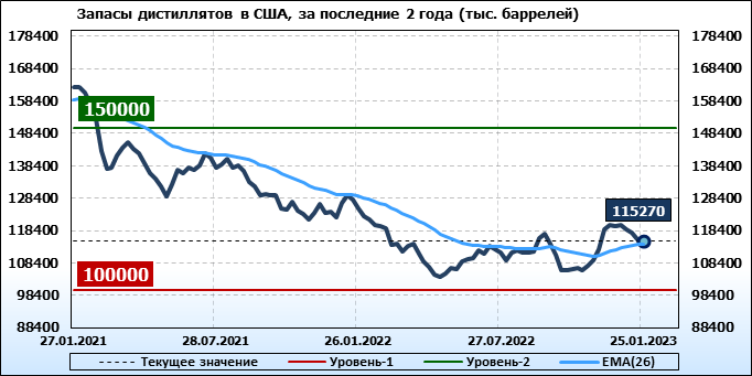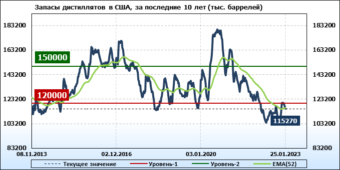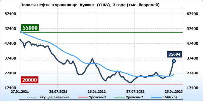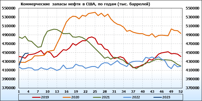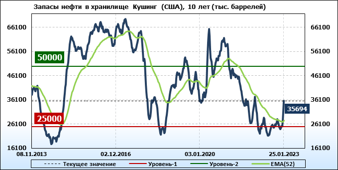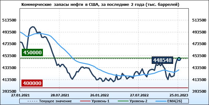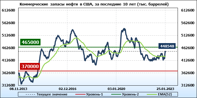 EIA. Коммерческие запасы нефти в США на 25 января 2023