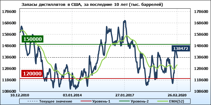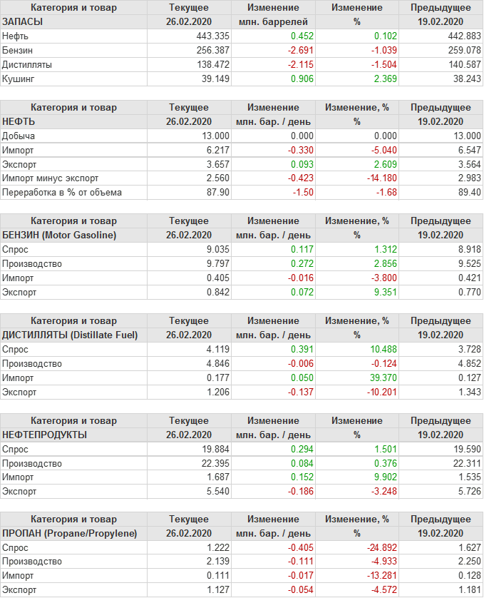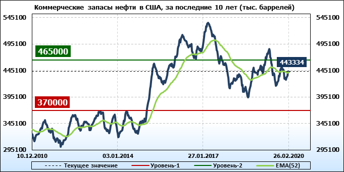 EIA. Коммерческие запасы нефти в США на 26 февраля 2020