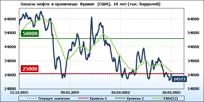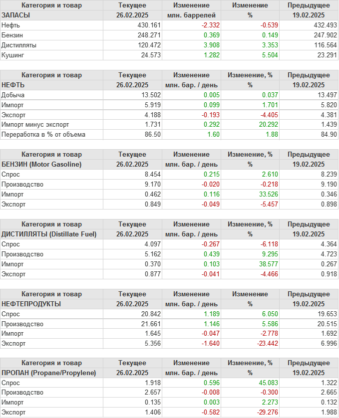 API. Изменение запасов нефти в США на 25 февраля 2025
