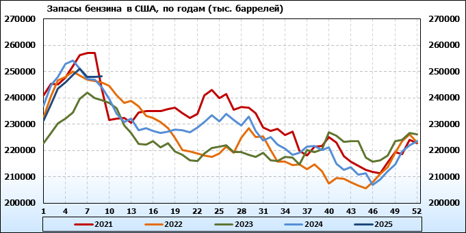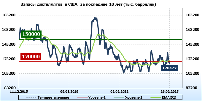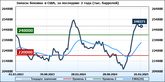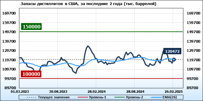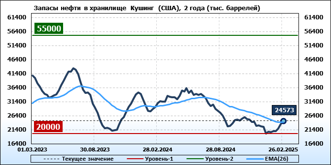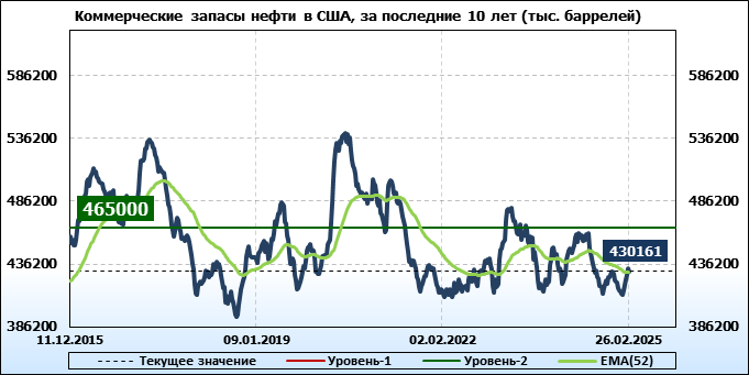 EIA. Коммерческие запасы нефти в США на 26 февраля 2025