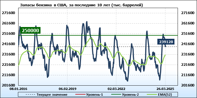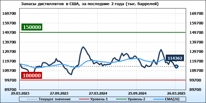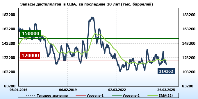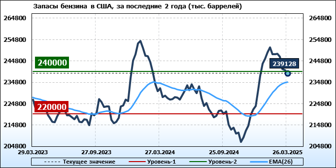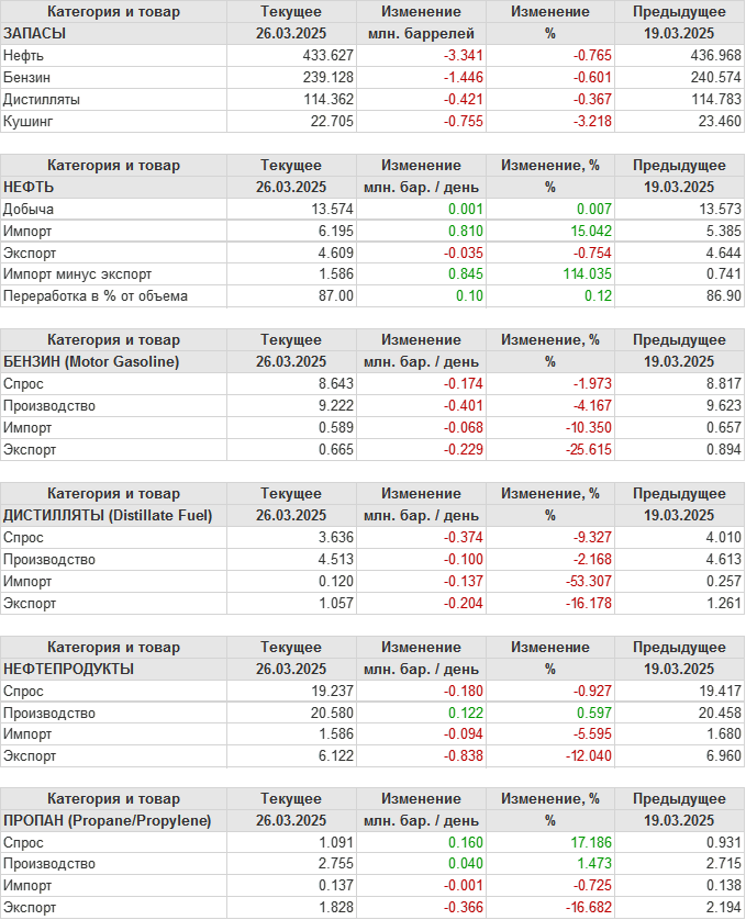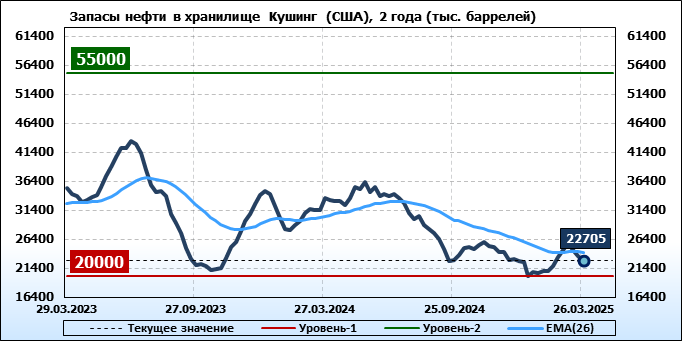 EIA. Коммерческие запасы нефти в США на 26 марта 2025
