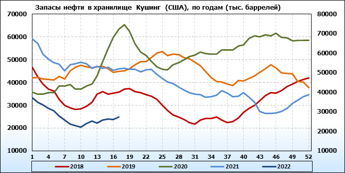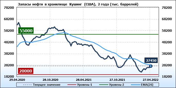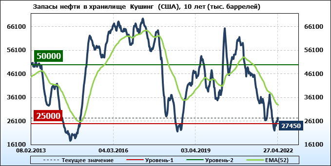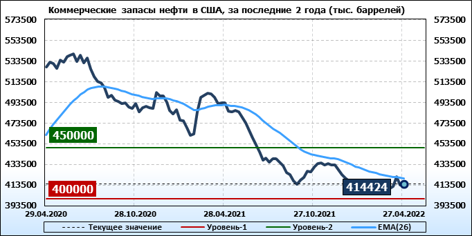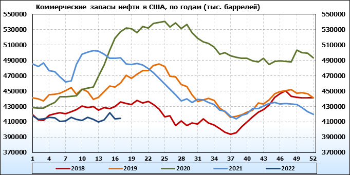 EIA. Коммерческие запасы нефти в США на 27 апреля 2022