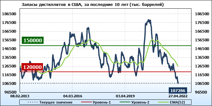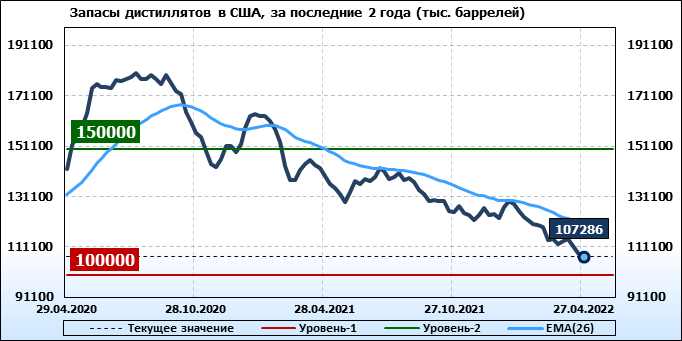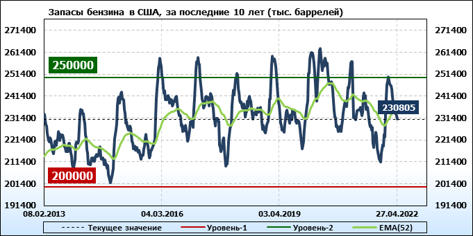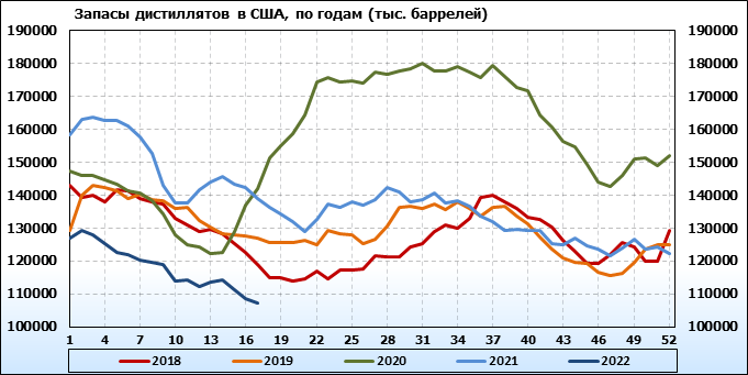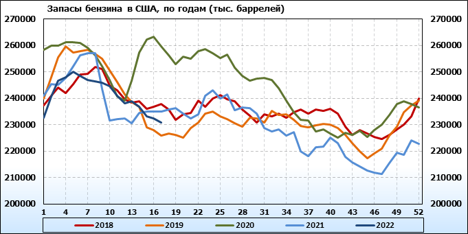 API. Изменение запасов нефти в США на 26 апреля 2022