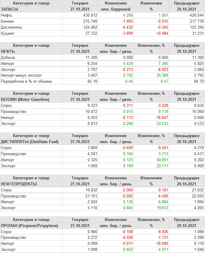 API. Изменение запасов нефти в США на 26 октября 2021