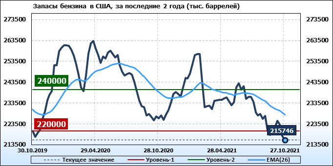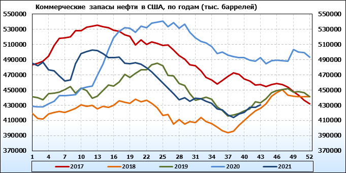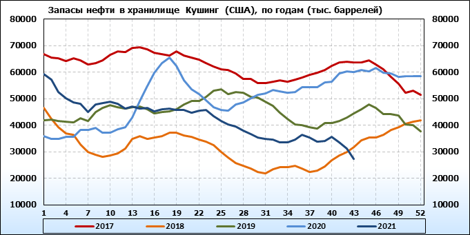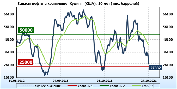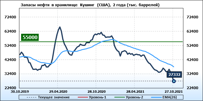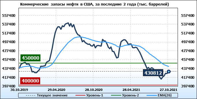 EIA. Коммерческие запасы нефти в США на 27 октября 2021
