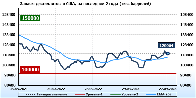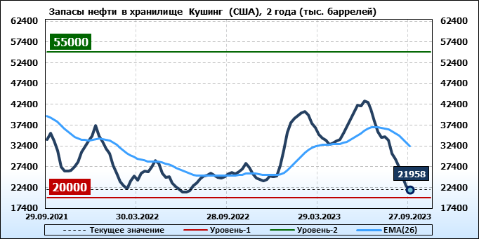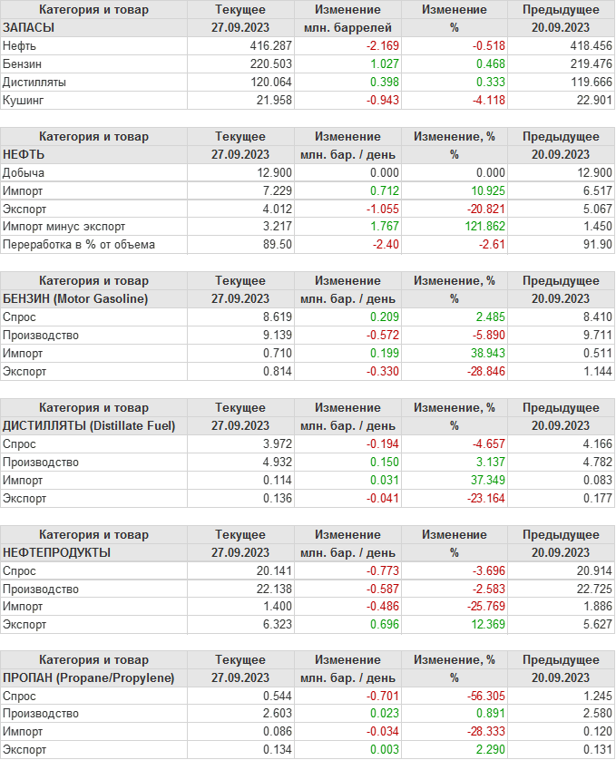 API. Изменение запасов нефти в США на 26 сентября 2023