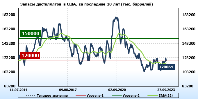EIA. Коммерческие запасы нефти в США на 27 сентября 2023