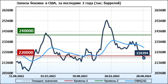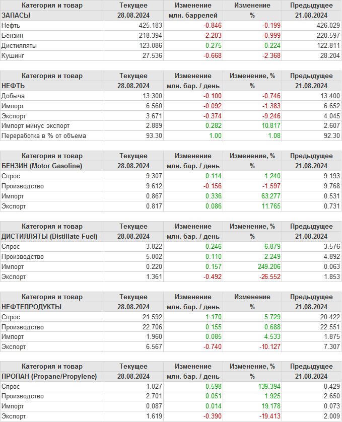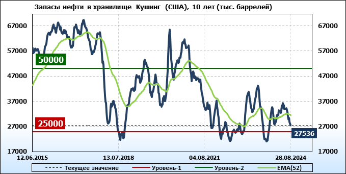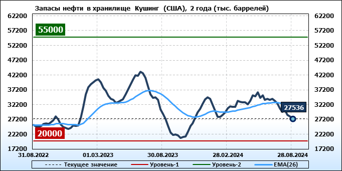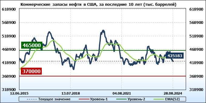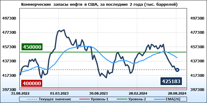 EIA. Коммерческие запасы нефти в США на 28 августа 2024