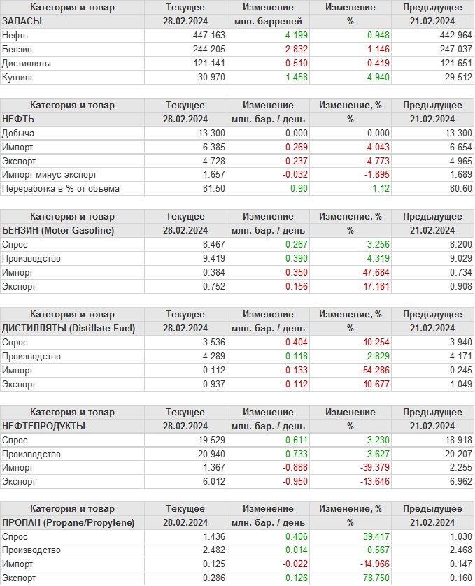 API. Изменение запасов нефти в США на 27 февраля 2024