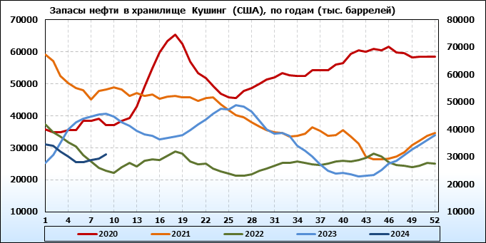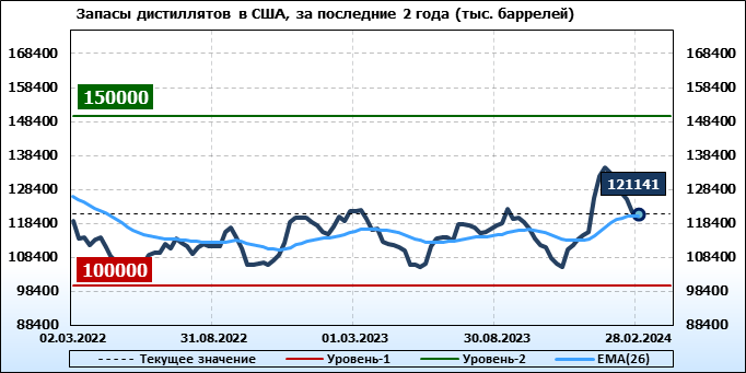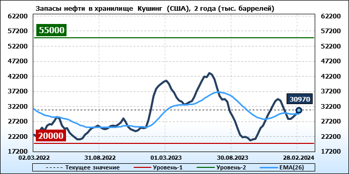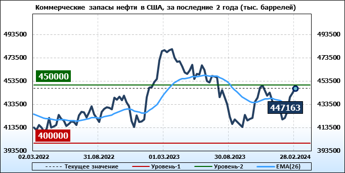 EIA. Коммерческие запасы нефти в США на 28 февраля 2024