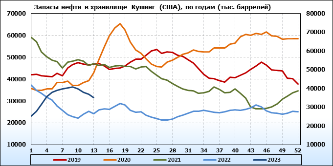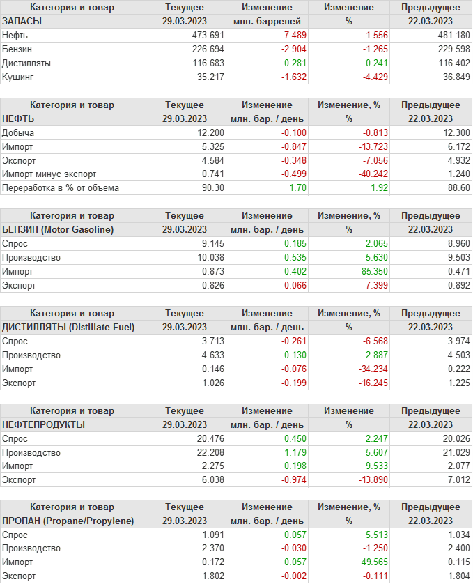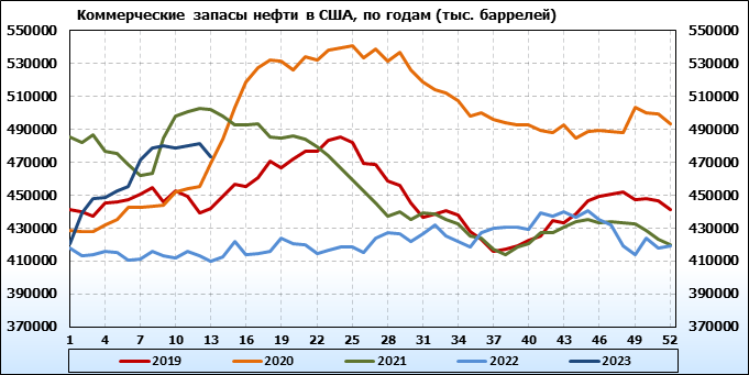EIA. Коммерческие запасы нефти в США на 29 марта 2023