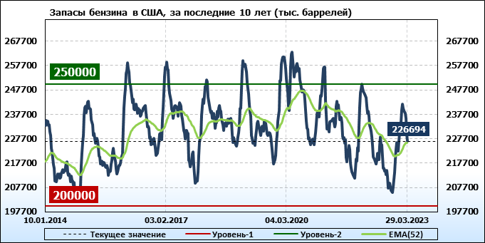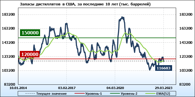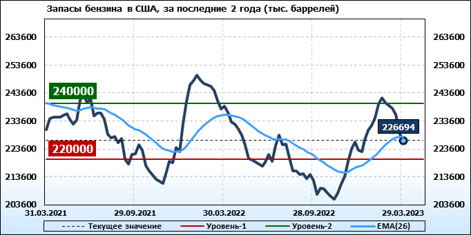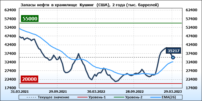 EIA. Коммерческие запасы нефти в США на 29 марта 2023