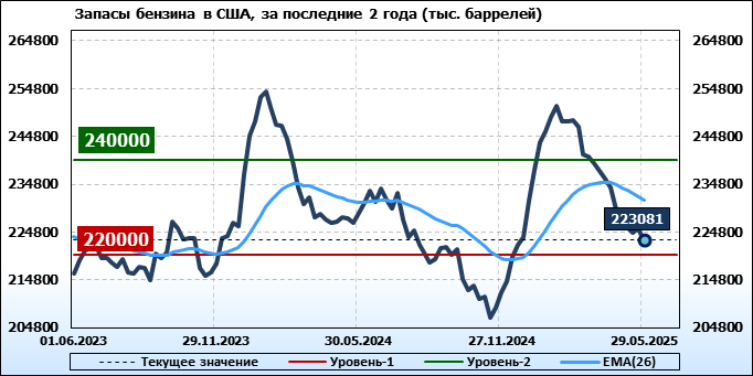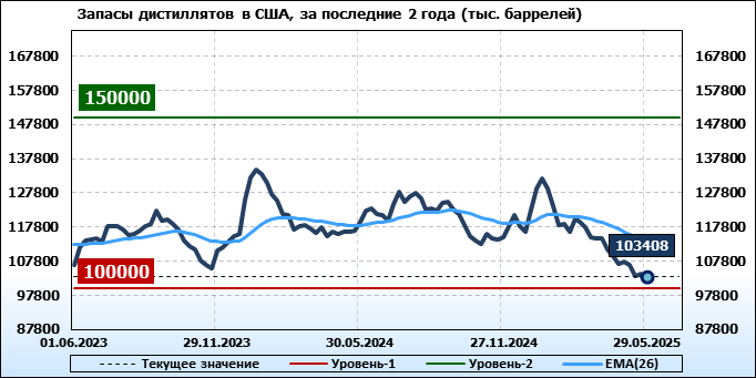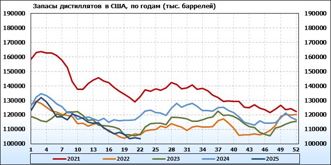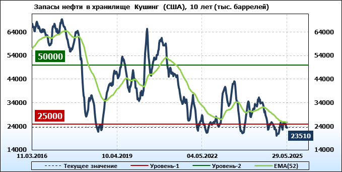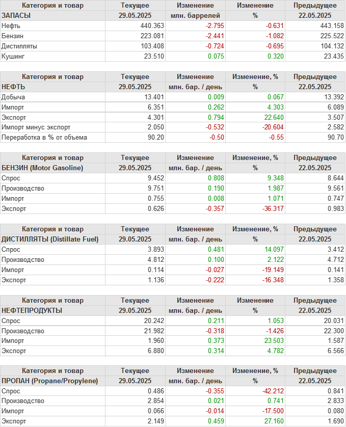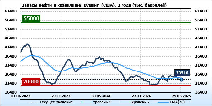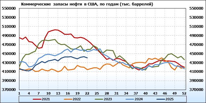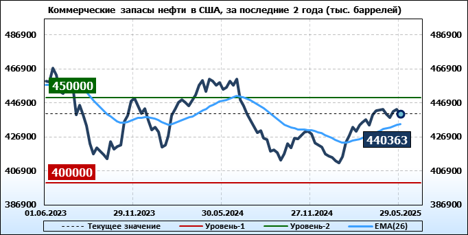 EIA. Коммерческие запасы нефти в США на 29 мая 2025