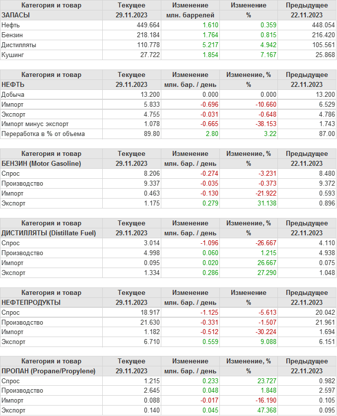 API. Изменение запасов нефти в США на 28 ноября 2023