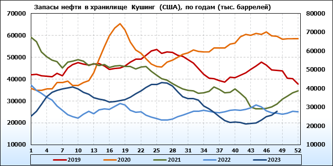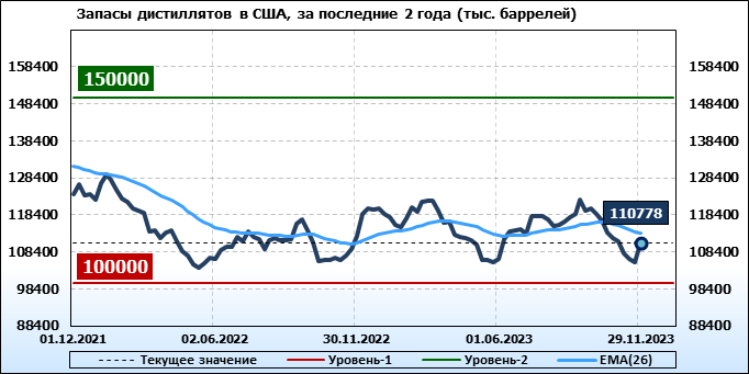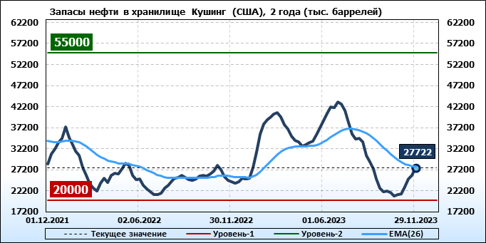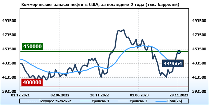 EIA. Коммерческие запасы нефти в США на 29 ноября 2023