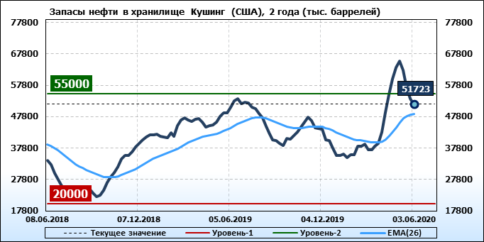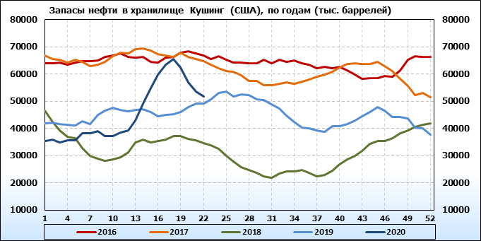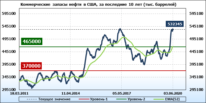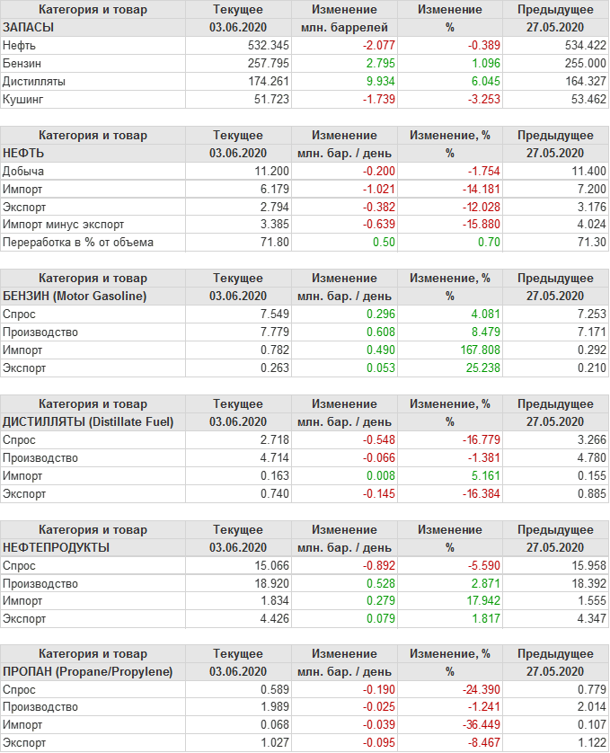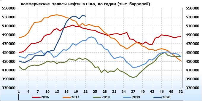 EIA. Коммерческие запасы нефти в США на 3 июня 2020
