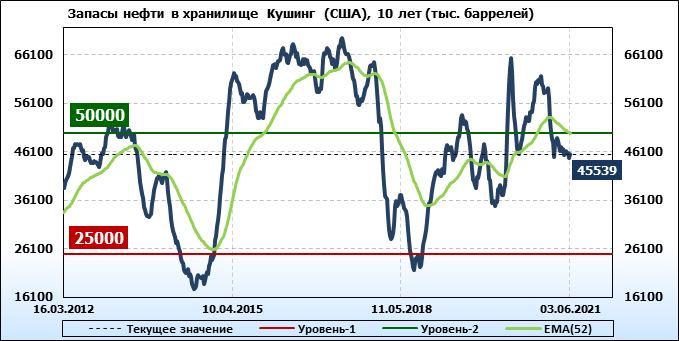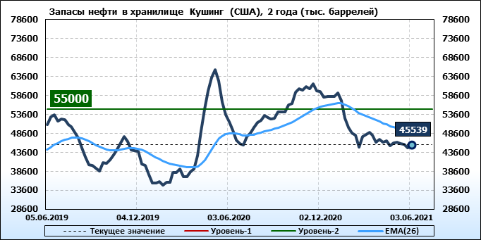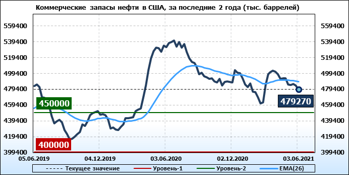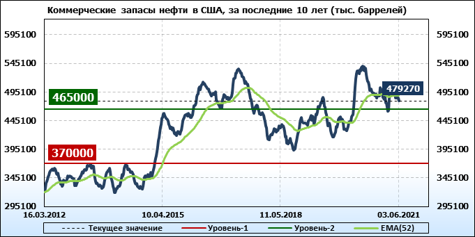 EIA. Коммерческие запасы нефти в США на 3 июня 2021