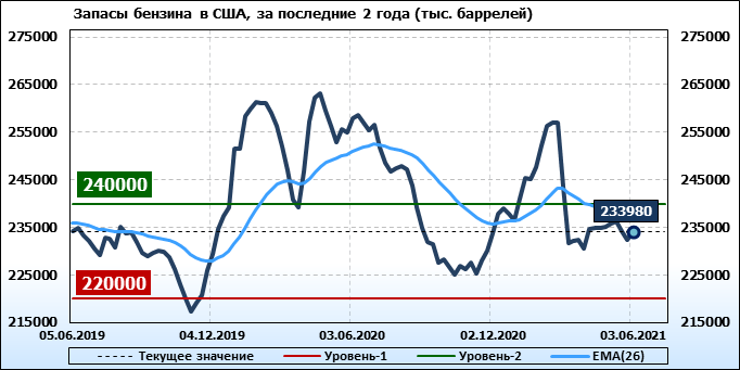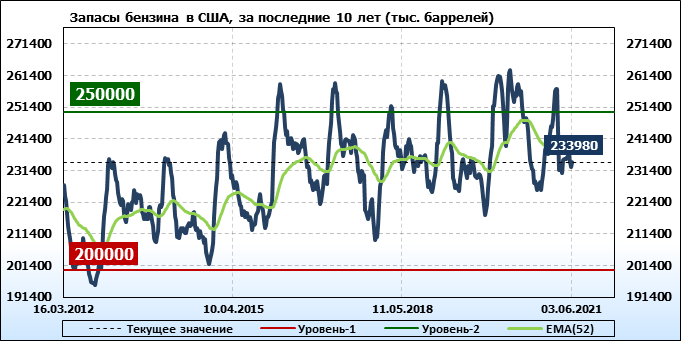 Эксперты, опрошенные агентством Bloomberg, ожидали уменьшения запасов нефти на 2533 тыс. баррелей, снижения запасов бензина на 1500 тыс. баррелей и снижения запасов дистиллятов на 1700 тыс. баррелей.