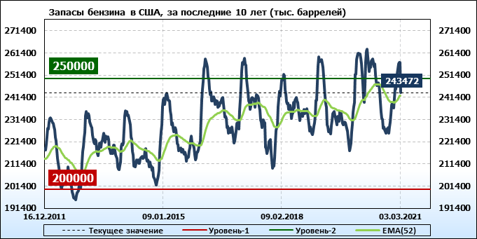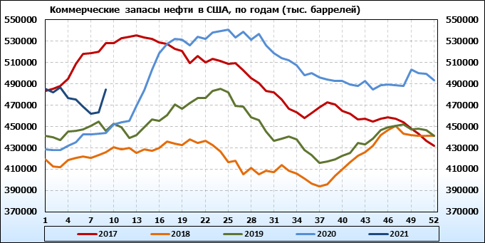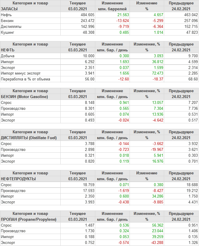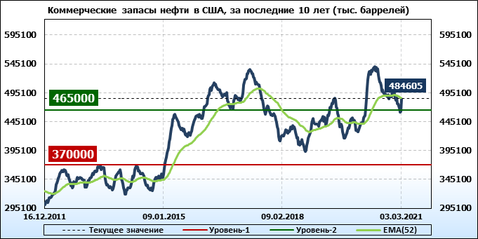 EIA. Коммерческие запасы нефти в США на 3 марта 2021