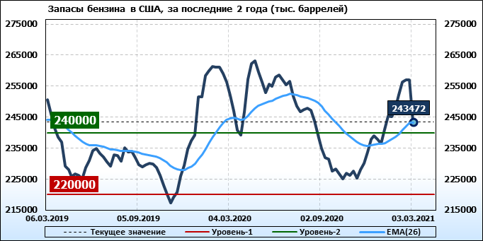 Эксперты, опрошенные агентством Bloomberg, ожидали уменьшения запасов нефти на 1300 тыс. баррелей, снижения запасов бензина на 2500 тыс. баррелей и снижения запасов дистиллятов на 3750 тыс. баррелей.