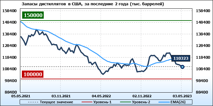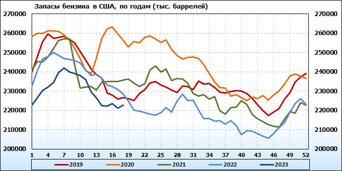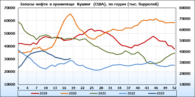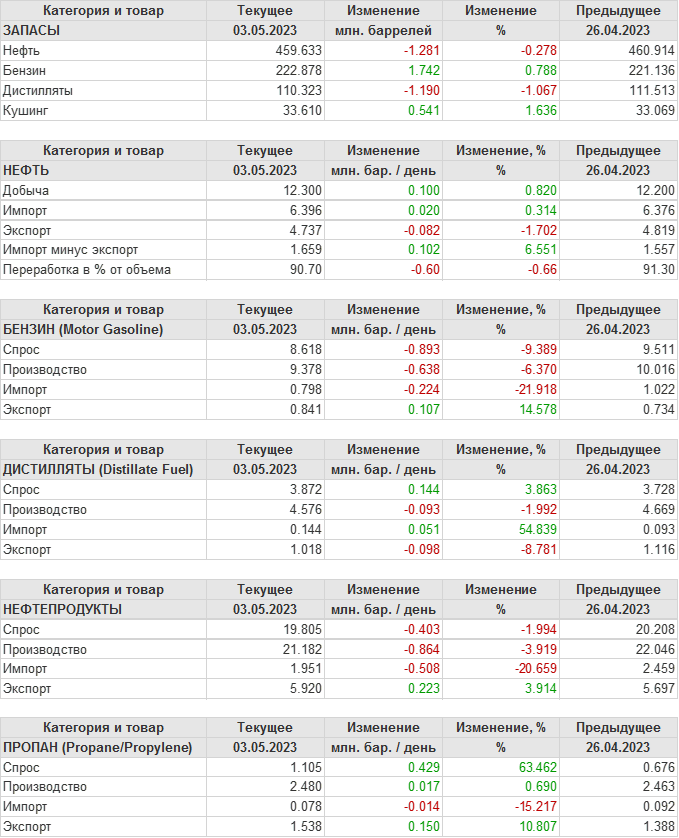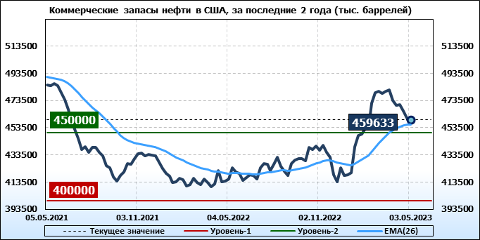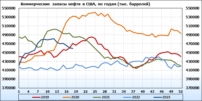 EIA. Коммерческие запасы нефти в США на 3 мая 2023