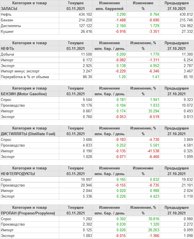 API. Изменение запасов нефти в США на 2 ноября 2021