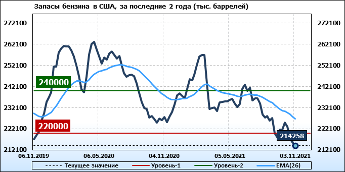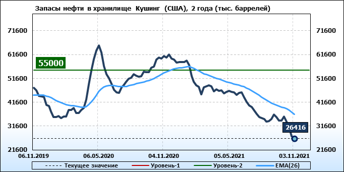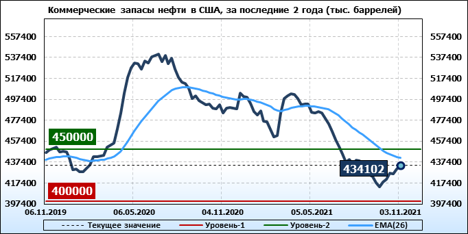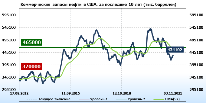 EIA. Коммерческие запасы нефти в США на 3 ноября 2021