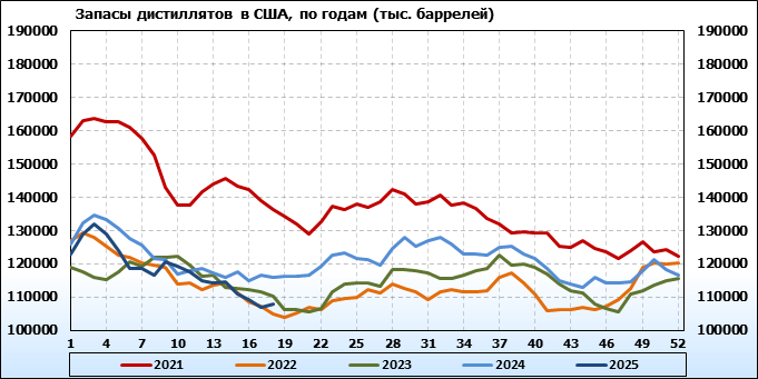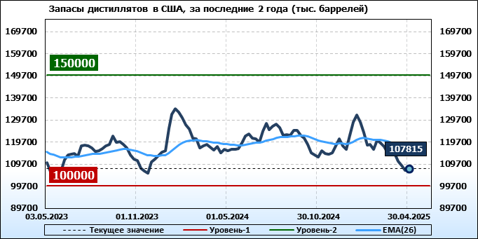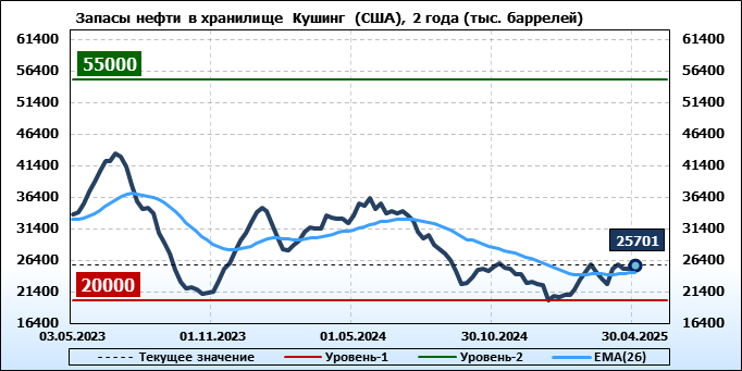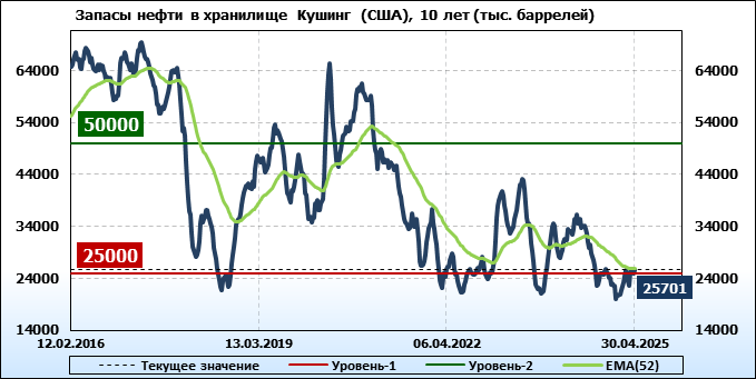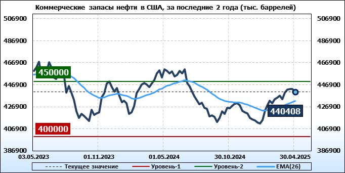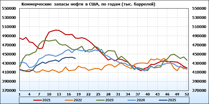 EIA. Коммерческие запасы нефти в США на 30 апреля 2025