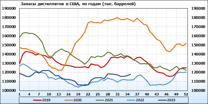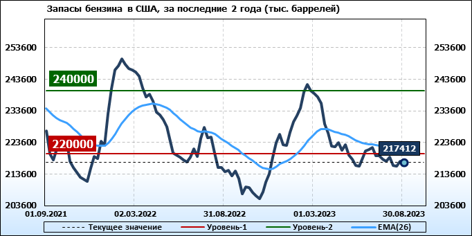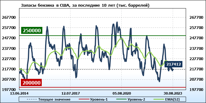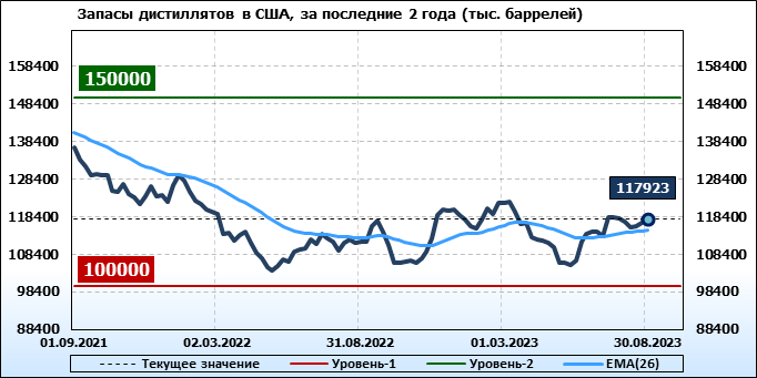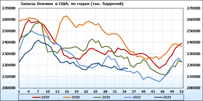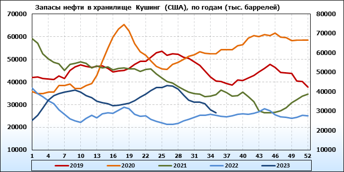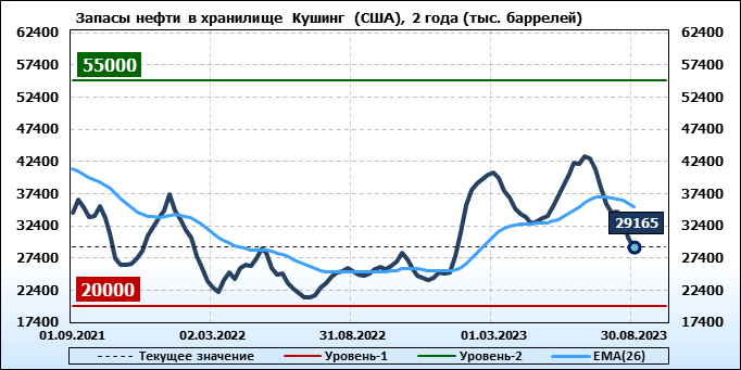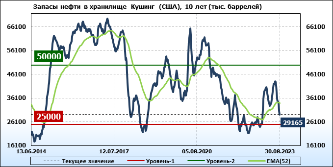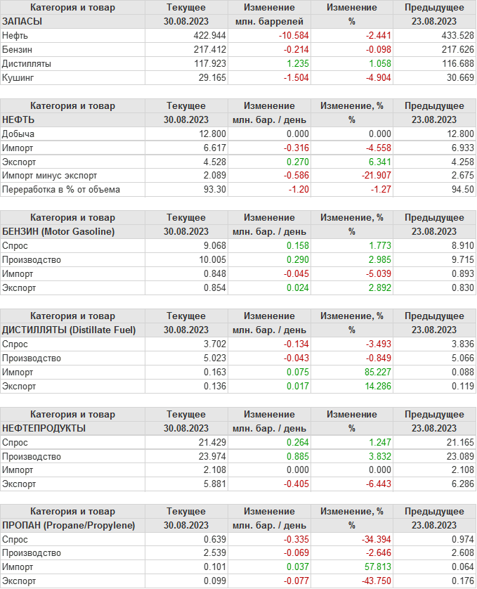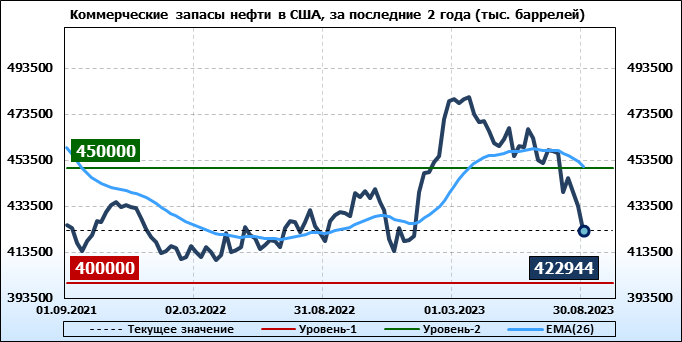 EIA. Коммерческие запасы нефти в США на 30 августа 2023