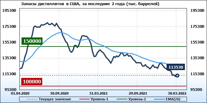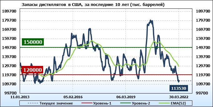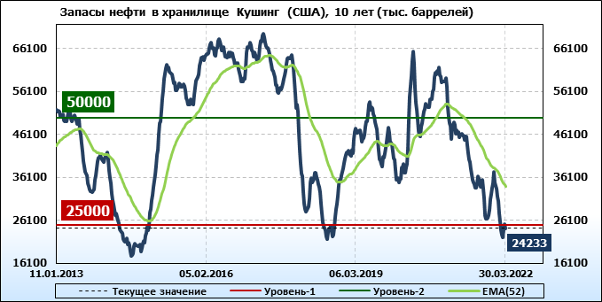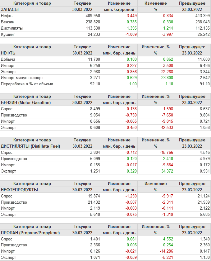 API. Изменение запасов нефти в США на 29 марта 2022
