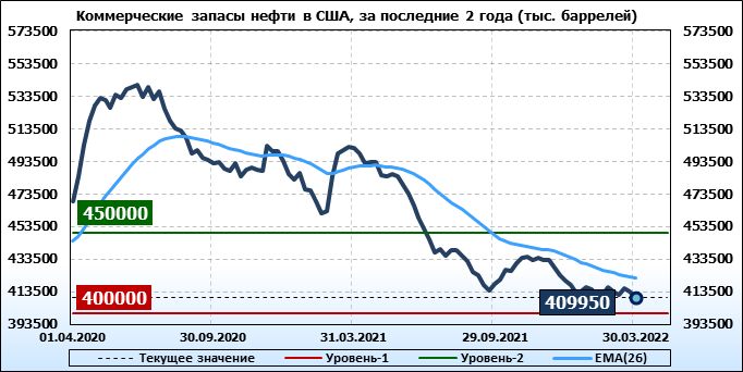EIA. Коммерческие запасы нефти в США на 30 марта 2022