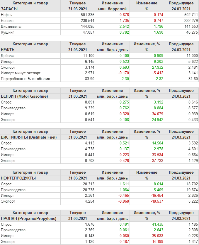 API. Изменение запасов нефти в США на 30 марта 2021